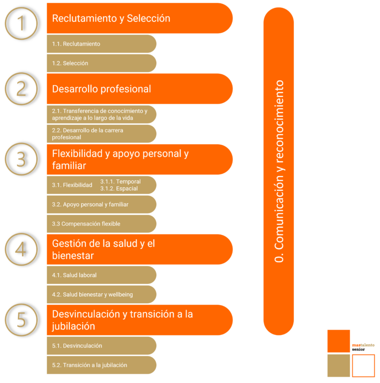 Los elementos y dimensiones que conforman el distintivo mastalentosenior se resumen a continuación